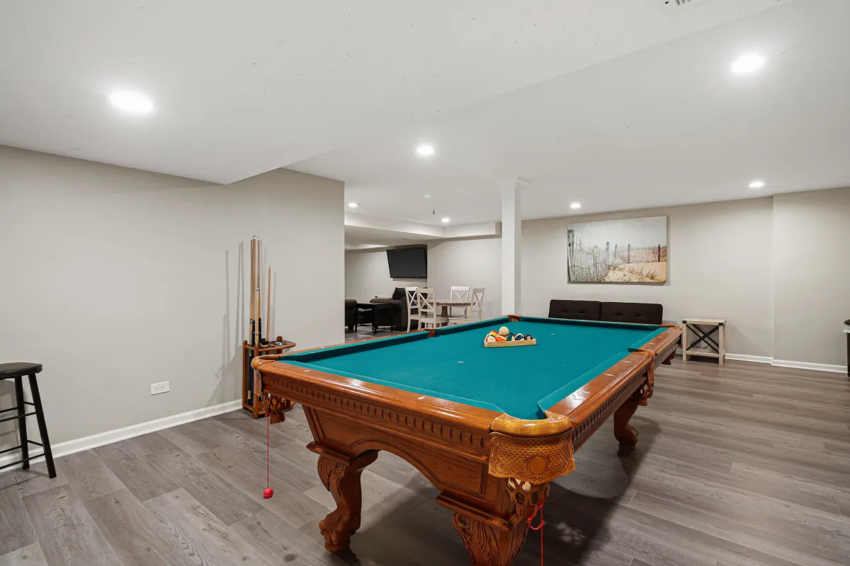 Perfect for entertaining. The basement is finished and features a sectional couch, TV, and a billiard table